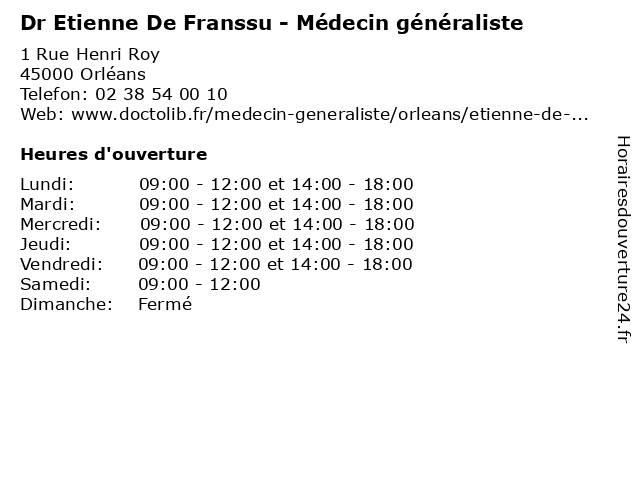 | Lundi | 09:00-12:00 et 14:00-18:00 |