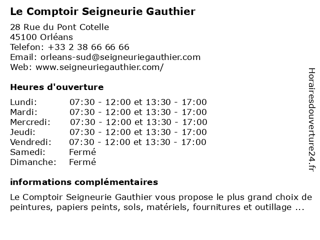 | Lundi | 07:30-12:00 et 13:30-17:00 |