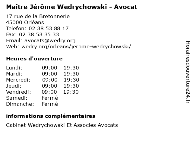 1 Maître Ladislas Wedrychowski - Avocat (Distance: 0,00 km) 17 rue de la Bretonnerie, 45000 Orléans avocat, avocats, cabinet, conseils, contentieux, juridique, justice, ladislas, litiges, maître, services, wedrychowski 2 Maître Isabelle Wedrychowski - Avocate (Distance: 0,00 km) 17 rue de la Bretonnerie, 45000 Orléans avocate, avocats, cabinet, conseils, contentieux, isabelle, juridique, justice, litiges, maître, services, wedrychowski 5 Dr Jérôme Segret - Chirurgien de la main - secrétariat (Distance: 4,60 km) 551 Avenue Jacqueline Auriol, 45770 Saran chirurgien, consultation, de, docteur, dr, jérôme, la, main, med, médecin, médecine, secrétariat, segret, traitement 6 |