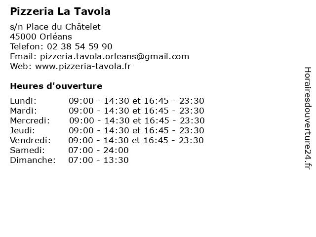 | Mardi | 09:00-14:30 et 16:45-23:30 |