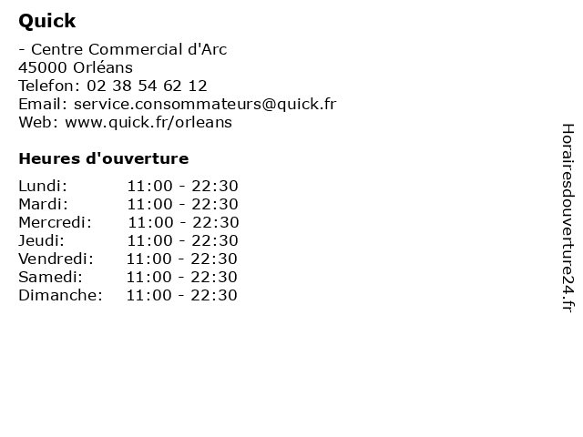 | Mercredi | 11:00-22:30 |