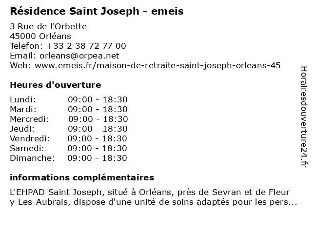 | Mercredi | 09:00-18:30 |