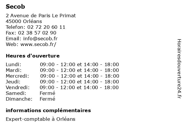 | Mardi | 09:00-12:00 et 14:00-18:00 |