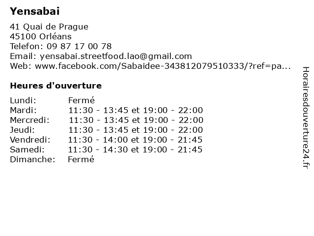 | Mardi | 11:30-13:45 et 19:00-22:00 |