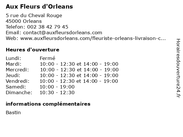 1 Marché aux fleurs à Orléans (Distance: 0,28 km) . Place de la République, 45000 Orléans aux, fleurs, frutas, hortalizas, marché, mercado, orléans, verduras 2 Marché aux livres et aux vieux papiers à Orléans (Distance: 0,28 km) . Place de la République, 45000 Orléans aux, et, frutas, hortalizas, livres, marché, mercado, orléans, papiers, verduras, vieux 4 Ventes Immobilières aux Particuliers - Vip immobilier (Distance: 0,40 km) 1 place du Martroi, 45000 Orléans agence, aux, gestion, immobilier, immobilières, location, particuliers, transactions, vente, ventes, vip 6 Aux Parfums d Asie (Distance: 0,50 km) 35 Rue De La Poterne, 45000 Orleans asie, aux, parfums, restaurants |