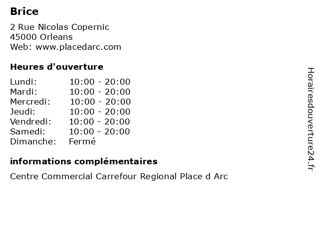 | Lundi | 10:00-20:00 |