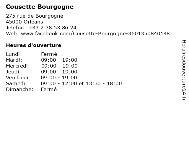 | Samedi | 09:00-12:00 et 13:30-18:00 |