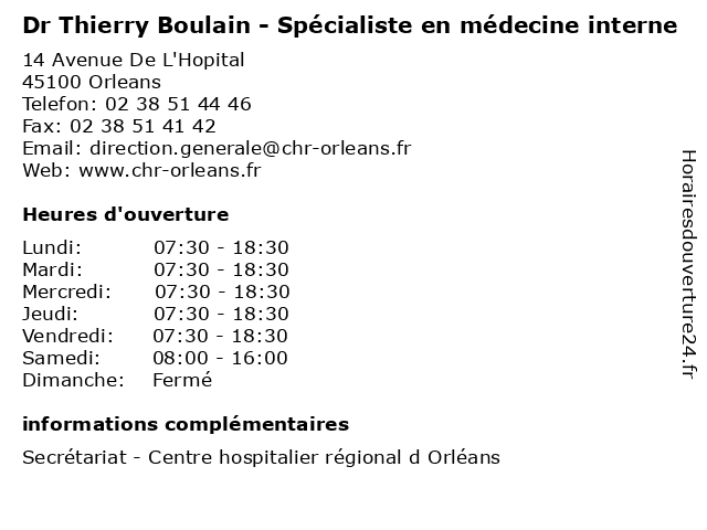 1 Dr Philippe Emy - Spécialiste en médecine interne (Distance: 0,00 km) 14 avenue de l'Hôpital, 45100 Orleans consultation, docteur, dr, emy, en, interne, med, médecin, médecine, philippe, spécialiste, traitement 2 Papilles En Herbes (Distance: 6,11 km) 89 Avenue De Saint Mesmin, 45100 Orleans ducali, en, fiacre, herbes, papilles, restaurants, saint 3 Crèche Familiale de l'Arc en Ciel - Saint Pryvé Saint Mesmin (Distance: 6,49 km) n/a Place de la belle Arche, 45750 Saint Pryvé Saint Mesmin caregivers houses, child care, ciel, crèche, de, en, familiale, family home, home care, kindergartens, l'arc, mesmin, micro-nurseries, parental home, pryvé, saint 4 Tout en Direct (Distance: 7,15 km) 2 rue du Cheval Rouge, 45000 Orléans direct, en, magasins, meubles, produits, tout 5 Escale en Virginie (Distance: 7,22 km) 75 Rue du Faubourg de Bourgogne, 45000 Orléans en, escale, homme, institut de beauté, massage, soins, virginie, épilations 6 L'Art en Burger (Distance: 7,46 km) 5 Rue des Minimes, 45000 Orleans burger, burgers, cuisine, en, l'art, rapide, restaurant, restauration  |