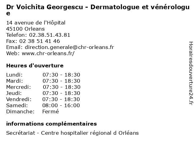 1 Dr Guido Bens - Dermatologue et vénérologue (Distance: 0,00 km) 14 avenue de l'Hôpital, 45100 Orleans bens, consultation, dermatologue, docteur, dr, et, guido, med, médecin, traitement, vénérologue 2 Dr Raphaëlle Binois - Dermatologue et vénérologue (Distance: 0,00 km) 14 avenue de l'Hôpital, 45100 Orleans binois, consultation, dermatologue, docteur, dr, et, med, médecin, raphaelle, raphaëlle, traitement, vénérologue 3 Dr Antoine Finon - Dermatologue et vénérologue (Distance: 0,00 km) 14 avenue de l'Hôpital, 45100 Orleans antoine, consultation, dermatologue, docteur, dr, et, finon, med, médecin, traitement, vénérologue 4 Dr Marianela Ackerman - Dermatologue et vénérologue (Distance: 2,39 km) 10 Rue du Docteur Chapelet, 45160 Olivet ackerman, bouton, dermato, dermatologue, dr, et, marianela, soins, vénérologue 5 Dr Tanguy Allard - Dermatologue et vénérologue (Distance: 2,58 km) 83 Rue Jacques Monod, 45160 Olivet allard, bouton, dermato, dermatologue, dr, et, soins, tanguy, vénérologue 6 Medecin Danielle Rivier (dermatologue) (Distance: 5,21 km) 93 Avenue de la Mouillere, 45100 Orleans danielle, dermatologue, docteur, medecin, rivier, sante, services |