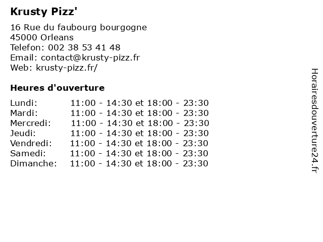 | Dimanche | 11:00-14:30 et 18:00-23:30 |