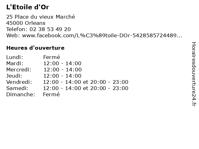 | Lundi | Fermé |
