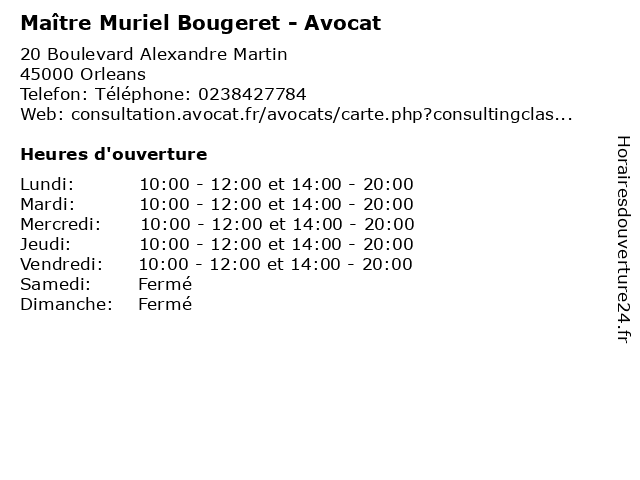 | Vendredi | 10:00-12:00 et 14:00-20:00 |