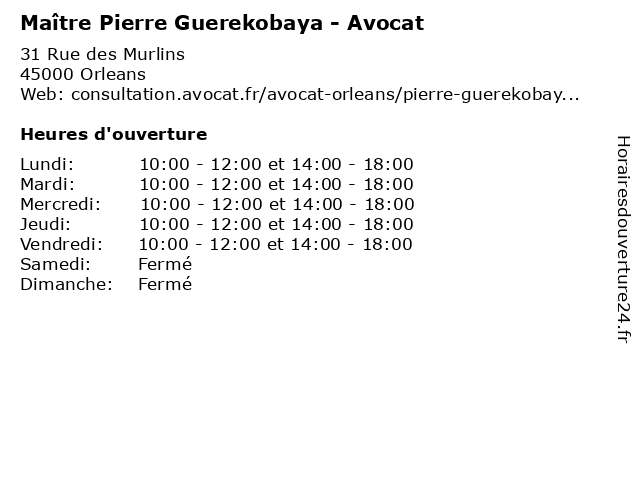 | Lundi | 10:00-12:00 et 14:00-18:00 |