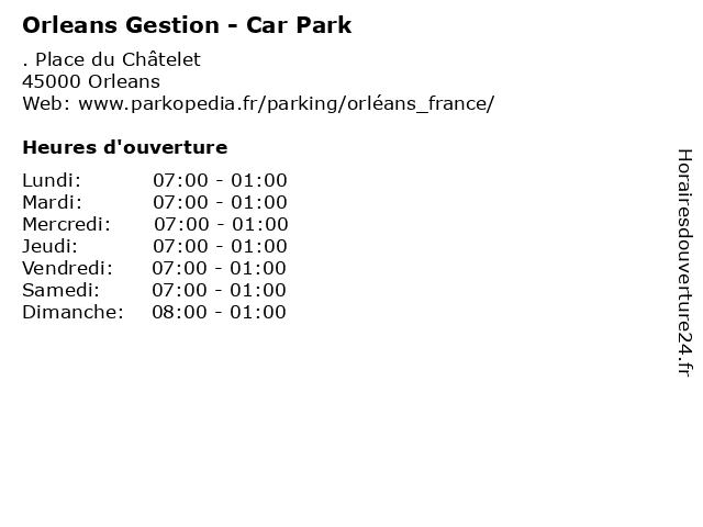 1 Orleans Gestion - Car Park (Distance: 0,17 km) . Rue des Halles, 45000 Orleans automobile, car, gestion, orleans, park, parking, services 2 Orleans Gestion - Car Park (Distance: 0,35 km) . Place du Cheval Rouge, 45000 Orleans automobile, car, gestion, orleans, park, parking, services 3 Orleans Gestion - Car Park (Distance: 0,38 km) . Chèvre Qui Danse, 45000 Orleans automobile, car, gestion, orleans, park, parking, services 4 Orleans Gestion - Car Park (Distance: 0,43 km) . Saint-Pierre Lentin, 45000 Orleans automobile, car, gestion, orleans, park, parking, services 5 Orleans Gestion - Car Park (Distance: 0,52 km) . Rue Henri Roy, 45000 Orleans automobile, car, gestion, orleans, park, parking, services 6 Orleans Gestion - Car Park (Distance: 0,55 km) . Rue Fernand Rabier, 45000 Orleans automobile, car, gestion, orleans, park, parking, services |