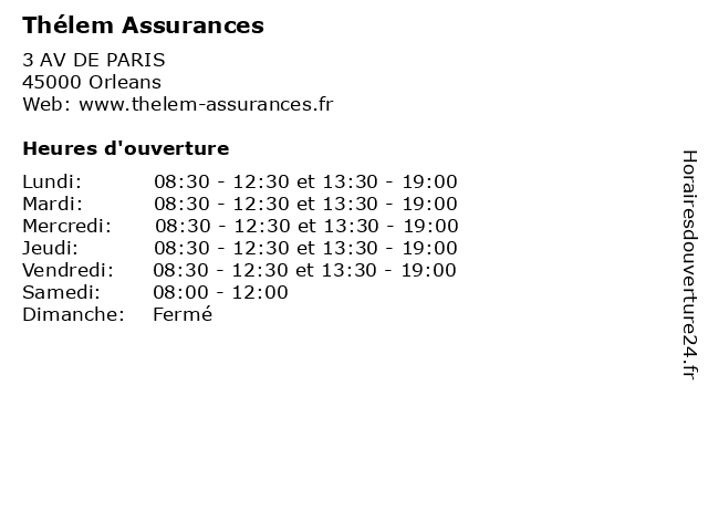 1 Thélem Assurances (Distance: 1,50 km) 16 RUE DU FAUBOURG ST JEAN, 45000 Orleans assurances, car insurance, home insurance, legal insurance, provident insurance, school insurance, thélem 2 Thélem Assurances (Distance: 2,42 km) 389 RUE DU FG BANNIER, 45409 Fleury Les Aubrais assurances, car insurance, home insurance, legal insurance, provident insurance, school insurance, thélem 3 Thélem Assurances (Distance: 4,74 km) 83 Place Louis Sallé, 45160 Olivet agence, assurance, assurances, assureur, habitation, santé, service, thélem, voiture 4 Thélem Assurances (Distance: 4,92 km) 39 RUE DE BEL AIR, 45380 La Chapelle St Mesmin assurances, car insurance, home insurance, legal insurance, provident insurance, school insurance, thélem 5 Thélem Assurances (Distance: 4,98 km) 22 RUE DU ROUSSILLON, 45560 St Denis En Val assurances, car insurance, home insurance, legal insurance, provident insurance, school insurance, thélem 6 Thélem Assurances (Distance: 5,04 km) 26 Rue de la Mairie, 45800 Saint Jean De Braye assurance auto, assurance habitation, assurance prévoyance, assurance santé, assurances, thélem  |