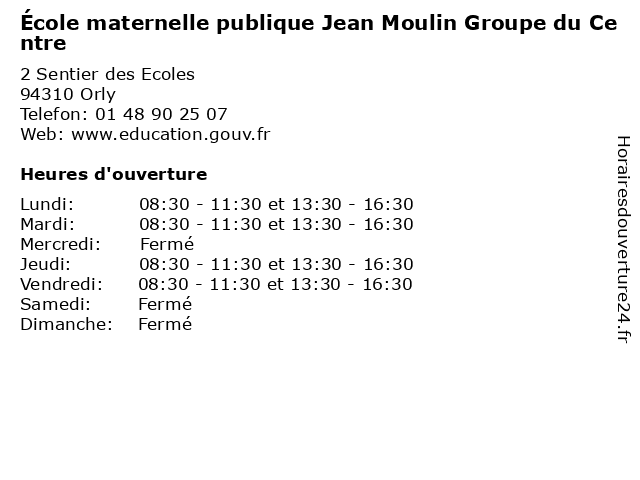 | Mardi | 08:30-11:30 et 13:30-16:30 |
