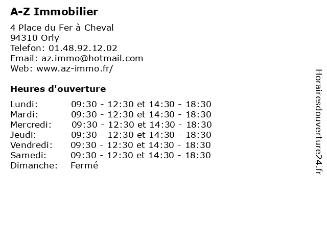 Lundi | 09:30-12:30 et 14:30-18:30 |
