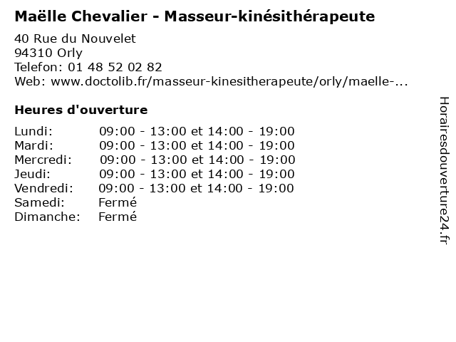 | Lundi | 09:00-13:00 et 14:00-19:00 |