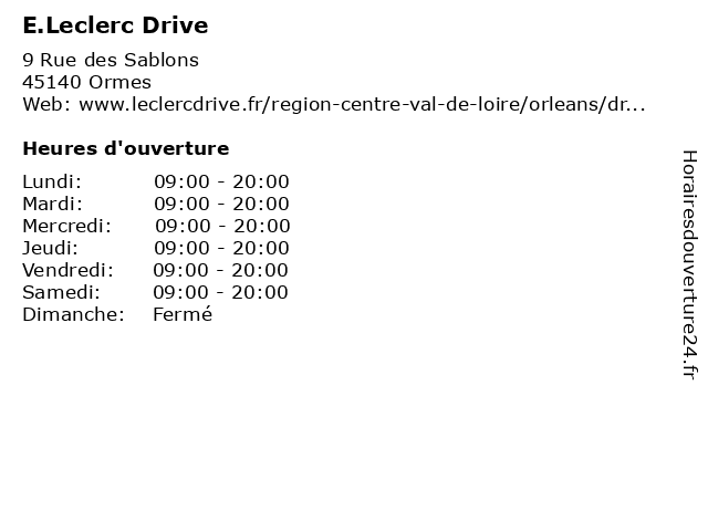 1 E.Leclerc Drive (Distance: 4,43 km) 2 Rue Lucien Bois, 45140 Saint-Jean-de-la-Ruelle discount, drive, e.leclerc, marché, supermarché 2 E.Leclerc Drive (Distance: 5,71 km) 12 rue André Dessaux, 45400 Fleury-les-Aubrais alimentation, drive, e.leclerc, supermarché 3 E.Leclerc Drive (Distance: 7,40 km) 1 Place du Général de Gaulle, 45000 Orléans discount, drive, e.leclerc, marché, supermarché 4 E.Leclerc Drive (Distance: 7,51 km) 21 avenue des Droits de L'Homme, 45000 Orléans alimentation, drive, e.leclerc, supermarché 5 E.Leclerc Drive (Distance: 13,60 km) rue Flandres Dunkerque, 45160 Olivet courses, drive, e.leclerc, en ligne 6 E.Leclerc Drive (Distance: 15,63 km) 5 Rue Jean Bertin, 45430 Chécy discount, drive, e.leclerc, marché, supermarché |