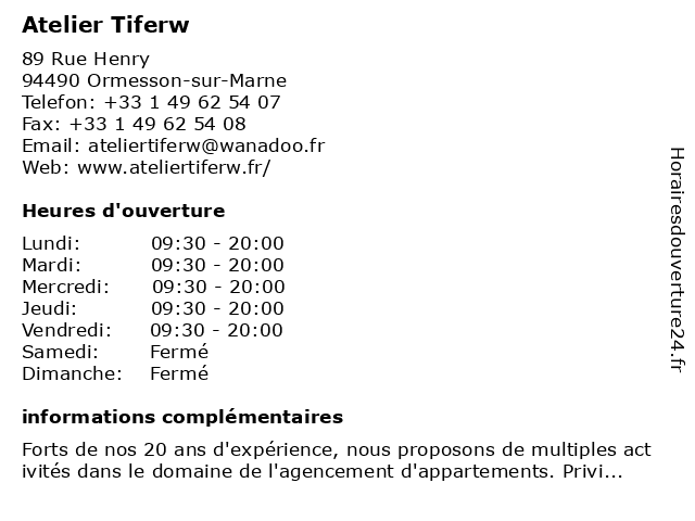 1 L'Atelier Des Compagnons (Distance: 0,55 km) 62 Rue du Général de Gaulle, 94430 Chennevières-sur-Marne compagnons, des, l'atelier 2 Atelier Nicolas Deschars (Distance: 0,68 km) 42-44 rue Gay Lussac, 94430 Chennevières-sur-Marne atelier, chennevières-sur-marne, deschars, design, fabricant, meubles, nicolas 3 Fiat (Atelier) (Distance: 1,30 km) 2-6 Route de la Liberation, 94430 Chennevières-sur-Marne atelier, automobiles, concéssionnaire, fiat, garage, motos 4 ATELIER POINT CLES - copie reproduction de clés de voiture et auto serrurerie (Distance: 3,10 km) 156 Rue Alexandre Fourny, 94500 Champigny-sur-Marne atelier, auto, cles, clés, copie, de, et, point, reproduction, serrurerie, voiture 5 Subaru (De l'atelier) (Distance: 5,17 km) 1 Rue Henry Dunant, 94500 Champigny-sur-Marne accessoires, de, l'atelier, services, subaru, véhicules 6  |