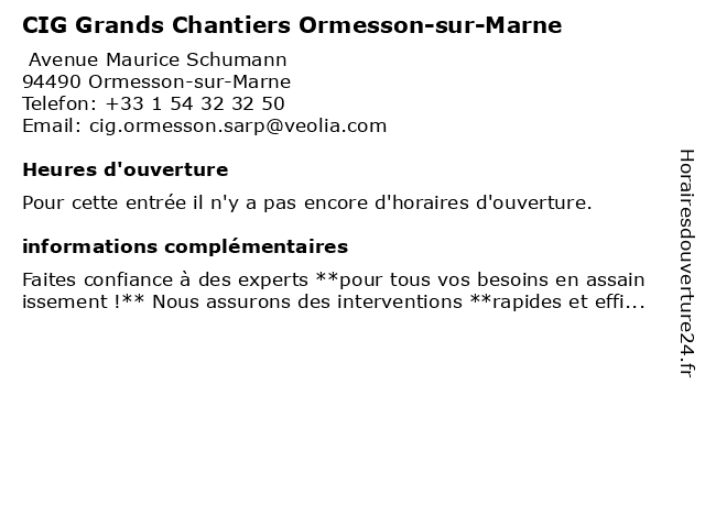 | Appeler CIG Grands Chantiers Ormesson-sur-Marne | |
