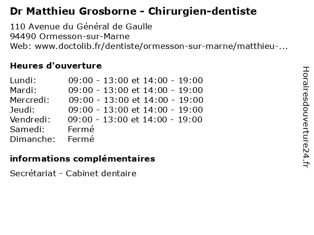 | Lundi | 09:00-13:00 et 14:00-19:00 |
