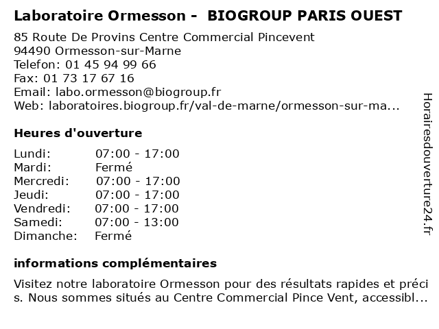 Termes de recherche pour Laboratoire Ormesson - BIOGROUP PARIS OUEST:paris, laboratoire, ouest, ormesson, biogroup, dépistages, laboratoire de diagnostic |