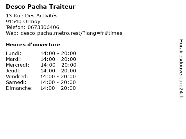 | Samedi | 14:00-20:00 |