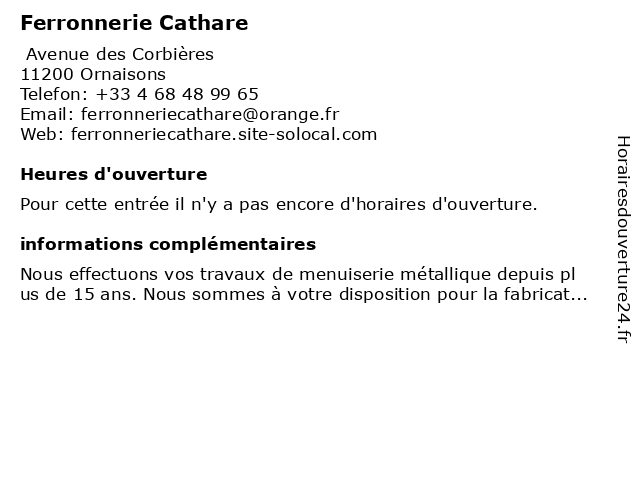 | Appeler Ferronnerie Cathare | |