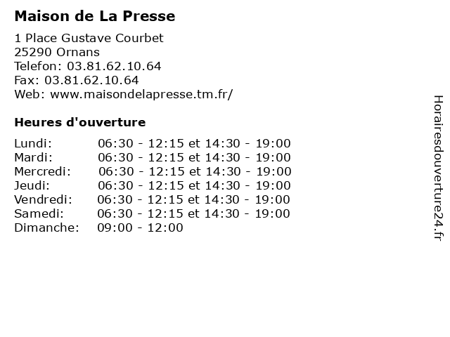 1 Maison de La Presse (Distance: 13,24 km) 1 Grande Rue -, 25660 Saone cadeaux, carterie, confiserie-boissons-food, de, française des jeux, la, librairie, maison, papeterie, pmu, presse, tabac 2 Tabac le Polo Presse Loto Pmu (Distance: 15,91 km) 17 Route de Lyon, 25720 Beure accessoires, le, loto, magasin., pmu, polo, presse, shopping, tabac, vente au détail 3 Maison du Livre et de la Presse (Distance: 17,23 km) 58 Grande Rue, 25000 Besançon de, du, et, la, livre, maison, presse 4 Tabac/Presse (Distance: 17,47 km) . Route de Dole, 25057 Besancon accessoires, beaute&sante, cafe, chaussures, enfants, mode femmes, mode hommes, optique, restaurant, service, sport, tabac/presse 5 Mag Presse (Distance: 17,55 km) 5 Avenue Carnot, 25000 Besançon cigarettes, livres, mag, magazine, papeterie, presse, tabac 6 |