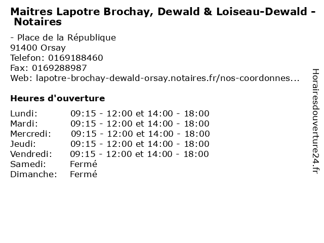 | Mardi | 09:15-12:00 et 14:00-18:00 |