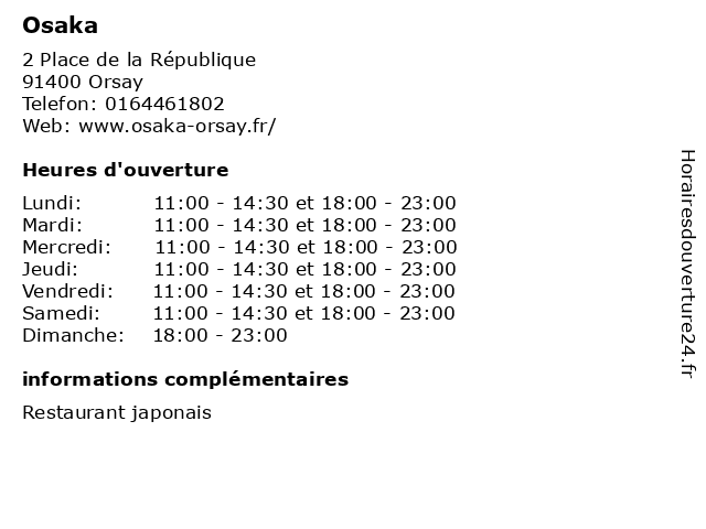 | Samedi | 11:00-14:30 et 18:00-23:00 |