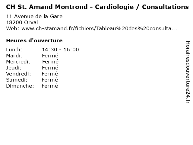 1 CH St. Amand Montrond - Cardiologie / Consultations (Distance: 0,66 km) 44 Avenue Jean Jaurès, 18200 Saint Amand Montrond amand, bureau, cardiologie, ch, consultation, consultations, dr, maladie, med, montrond, médecin, médecine, pratique, st., thérapie, traitement 2 CH St. Amand Montrond - Cardiologie / Consultations (Distance: 1,51 km) - Place de la République, 18200 Saint Amand Montrond amand, bureau, cardiologie, ch, consultation, consultations, dr, maladie, med, montrond, médecin, médecine, pratique, st., thérapie, traitement 3 CH St. Amand Montrond - Cardiologie / Consultations (Distance: 2,08 km) - Rue de La Fontaine Saint Martin, 18200 Saint Amand Montrond amand, bureau, cardiologie, ch, consultation, consultations, dr, maladie, med, montrond, médecin, médecine, pratique, st., thérapie, traitement 4 CH St. Amand Montrond - Cardiologie / Consultations (Distance: 2,09 km) - Rue de la Croix Duchet, 18200 Saint Amand Montrond amand, bureau, cardiologie, ch, consultation, consultations, dr, maladie, med, montrond, médecin, médecine, pratique, st., thérapie, traitement 5 CH St. Amand Montrond - Cardiologie / Echocardiographies (Distance: 0,00 km) 11 Avenue de la Gare, 18200 Orval amand, bureau, cardiologie, ch, consultation, dr, echocardiographies, maladie, med, montrond, médecin, médecine, pratique, st., thérapie, traitement 6 CH St. Amand Montrond - Cardiologie / Epreuves d'effort (Distance: 0,00 km) 11 Avenue de la Gare, 18200 Orval amand, bureau, cardiologie, ch, consultation, d'effort, dr, epreuves, maladie, med, montrond, médecin, médecine, pratique, st., thérapie, traitement |