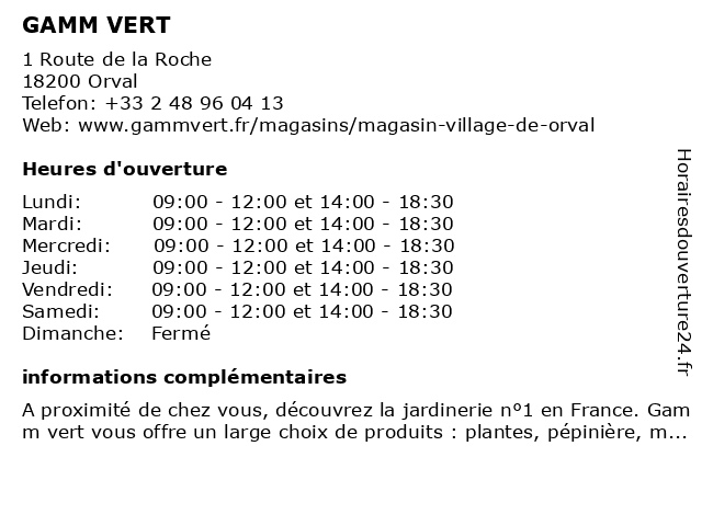 | Samedi | 09:00-12:00 et 14:00-18:30 |