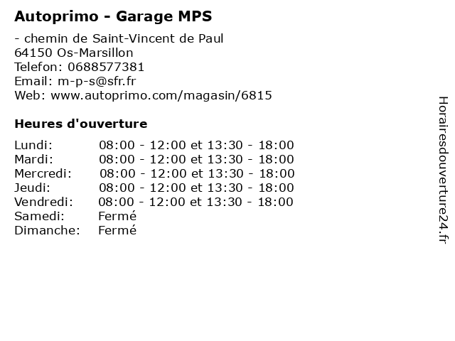 | Lundi | 08:00-12:00 et 13:30-18:00 |