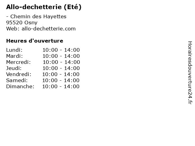 1 Allo-dechetterie (Eté) (Distance: 4,57 km) - Avenue du Fief, 95310 Saint-Ouen-l'Aumône allo, dechetterie, eté, gravats, huiles usées, la réception des déchets et écocentres, les appareils électroménagers, les déchets verts, papier et carton en quantité 2 Allo-dechetterie (Eté) (Distance: 5,97 km) - Rue des Abysses, 95000 Cergy allo, dechetterie, eté, gravats, huiles usées, la réception des déchets et écocentres, les appareils électroménagers, les déchets verts, papier et carton en quantité 3 Allo-dechetterie (Eté) (Distance: 7,89 km) - Rue Denis Papin, 95280 Jouy-le-Moutier allo, dechetterie, eté, gravats, hiver, huiles usées, la réception des déchets et écocentres, les appareils électroménagers, les déchets verts, papier et carton en quantité 4 Allo-dechetterie (Eté) (Distance: 9,65 km) - Chemin des Hautes Plaines, 78260 Achères allo, dechetterie, eté, gravats, huiles usées, la réception des déchets et écocentres, les appareils électroménagers, les déchets verts, papier et carton en quantité 5 Allo-dechetterie (Eté) (Distance: 11,83 km) - Rue du Goulet, 95640 Marines allo, dechetterie, eté, gravats, huiles usées, la réception des déchets et écocentres, les appareils électroménagers, les déchets verts, papier et carton en quantité 6 Allo-dechetterie (Eté) (Distance: 13,88 km) - du Paradis, 95660 Champagne-sur-Oise allo, dechetterie, eté, gravats, huiles usées, la réception des déchets et écocentres, les appareils électroménagers, les déchets verts, papier et carton en quantité |