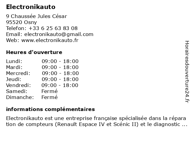Electronikauto est une entreprise française spécialisée dans la réparation de compteurs (Renault Espace IV et Scénic II) et le diagnostic automobile. Située en région parisienne (au nord de ...