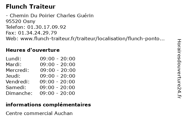 1 Flunch Traiteur (Distance: 13,53 km) 399 Rue du Général Leclerc, 95130 Franconville boisson, cafétéria, dessert, flunch, plats, restaurant, traiteur 2 Flunch (Distance: 0,00 km) . Chemin Du Poirier Charles Guerin, 95520 Osny alimentation, flunch, restaurant, restauration 3 France Antilles Traiteur (Distance: 2,47 km) 35 Rue Fontaine, 95300 Pontoise antilles, bar, bistro, bistrot, brasserie, café, france, pub, restaurant, restauration, resto, traiteur 4 Midi Moins le Quart - Traiteur (Distance: 2,88 km) 42 ZA des Coudriers, 95650 Boissy-l'Aillerie boissy-l'aillerie, cuisine, le, midi, moins, quart, traiteur, événement 5 Le Traiteur Des Terroirs (Distance: 3,22 km) 15 Za Des 4 Vents, 95650 Boissy-l'Aillerie cuisine, des, le, restaurants, terroirs, traiteur 6 Flunch (Distance: 4,61 km) n/a Avenue des 3 Fontaines, 95000 Cergy alimentation, flunch, restaurant, restauration |