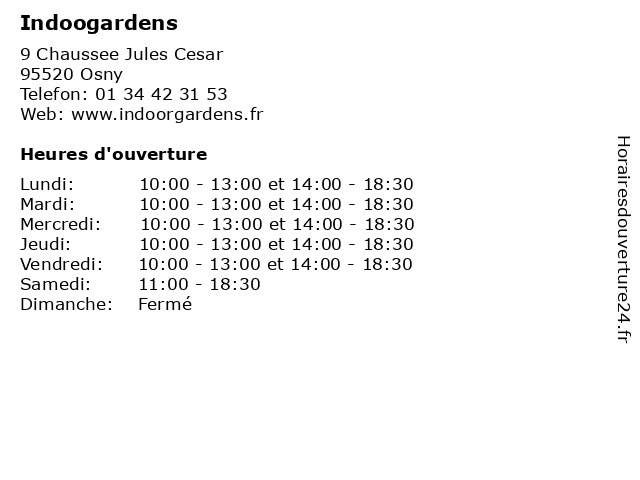 | Vendredi | 10:00-13:00 et 14:00-18:30 |
