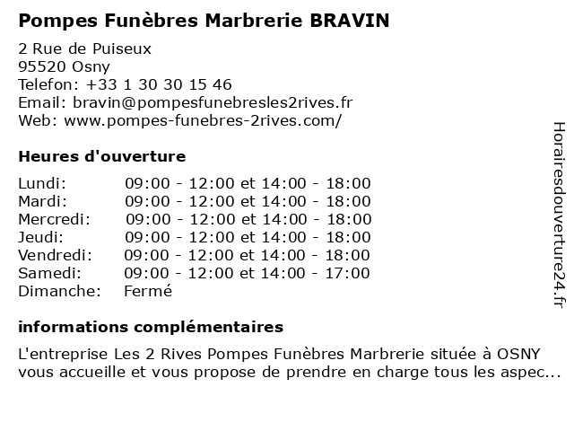 1 Pompes funèbres PFG OSNY (Distance: 0,56 km) 47 Rue Aristide Briand, 95520 Osny avis de décès, crémation, entretien de sépulture, fleurs deuil, formalités après obsèques, funèbres, inhumation, marbrerie, monument funéraire, osny, pfg, pompes, pompes funèbres, prévoyance obsèques 2 Pompes Funèbres Marbrerie du Val de Viosne (Distance: 0,58 km) 6 Place des Impressionnistes, 95520 Osny de, du, funèbres, marbrerie, pompes, val, viosne 3 Pompes Funèbres Musulmanes Al Kawthar (Distance: 2,64 km) 25 Route de Menandon, 95300 Pontoise al, funèbres, inhumation, kawthar, musulmanes, obsèques, pompes, pompes funèbres, service funéraire 4 Pompes Funèbres Marbrerie Berthelot (Distance: 2,84 km) 79 Bis Rue de Gisors, 95300 Pontoise berthelot, funèbres, marbrerie, pompes 5 Pompes Funèbres Roc-Eclerc (Distance: 2,88 km) 75 Rue de Gisors, 95300 Pontoise articles funéraires, assistance rapatriement, démarches admnistratives, eclerc, fleurs fraîches, funèbres, gestion des obsèques, pompes, prévoyance obsèques, roc, travaux de marbrerie et cimetière 6 Pompes funèbres PFG PONTOISE - Rue de Gisors (Distance: 3,00 km) 57-59 Rue de Gisors, 95300 Pontoise avis de décès, crémation, de, entretien de sépulture, fleurs deuil, formalités après obsèques, funèbres, gisors, inhumation, marbrerie, monument funéraire, pfg, pompes, pompes funèbres, pontoise, prévoyance obsèques, rue |