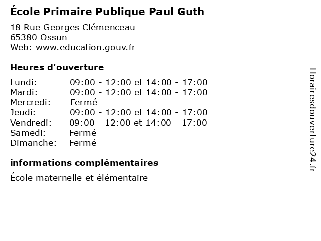 | Mardi | 09:00-12:00 et 14:00-17:00 |