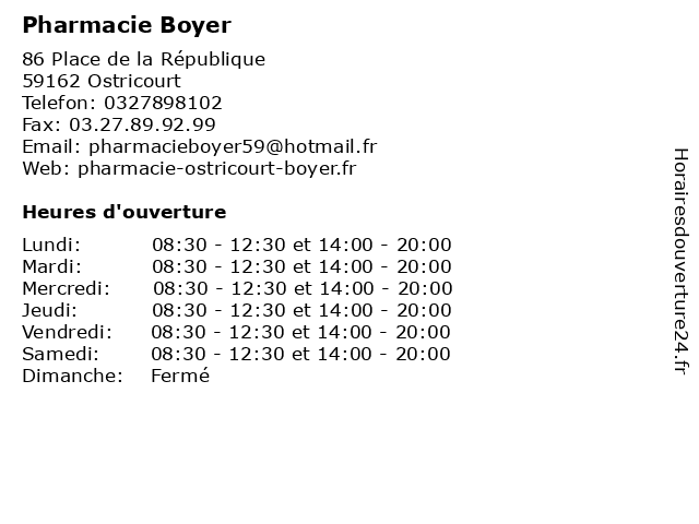 | Samedi | 08:30-12:30 et 14:00-20:00 |