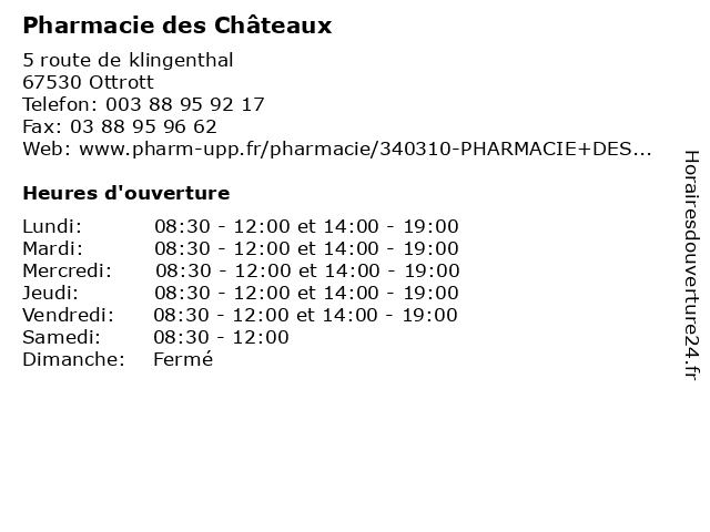 | Vendredi | 08:30-12:00 et 14:00-19:00 |