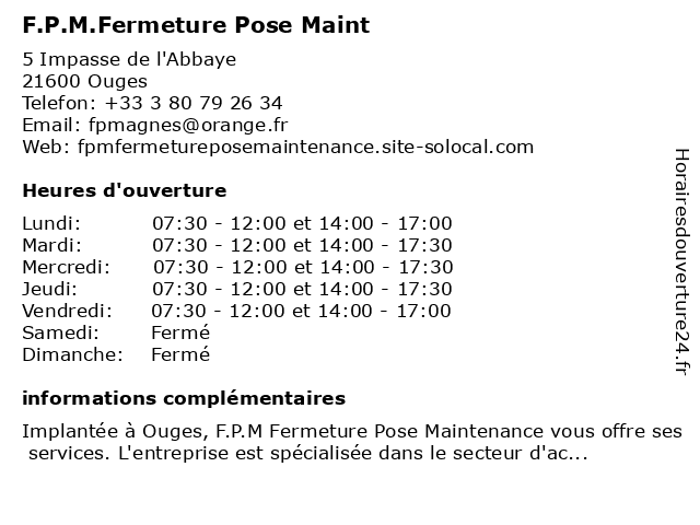 Termes de recherche pour F.P.M.Fermeture Pose Maint:pose, maint, f.p.m.fermeture |