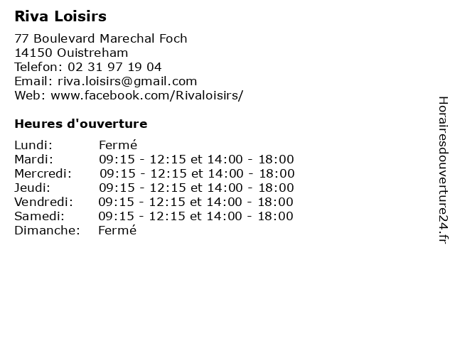 1 Aux Délices de Riva (Distance: 0,93 km) 8 Rue Auber, 14150 Ouistreham aux, boulangerie., chocolat, comestibles, de, desserts, délices, riva 2 Esso Express Riva Bella (Distance: 0,94 km) - Route de Caen - CD 84, 14150 Ouistreham bella, carburant, esso, express, riva, services, station, véhicules 3 Camping Homair - Riva Bella (Distance: 0,98 km) 1 Rue de la Haie Breton, 14150 Ouistreham bella, camping, camping animations, camping calvados, camping calvados 4 étoiles, camping club enfants, camping famille, camping normandie, camping normandie 4 étoiles, camping normandie piscine, camping normandie piscine couverte, camping ouistreham, camping piscine, camping piscine couverte, homair, riva 4 Mondial Plus Menager Literie et Loisirs Ouistreham (Distance: 1,04 km) 28-30 Route de Lion, 14150 Ouistreham et, literie, loisirs, menager, mondial, ouistreham, plus 5 Hôtel Riva Bella (Distance: 1,31 km) . Boulevard Commandant Kieffer, 14150 Ouistreham bar, bella, hotel, hôtel, restaurant, riva, service 6 |