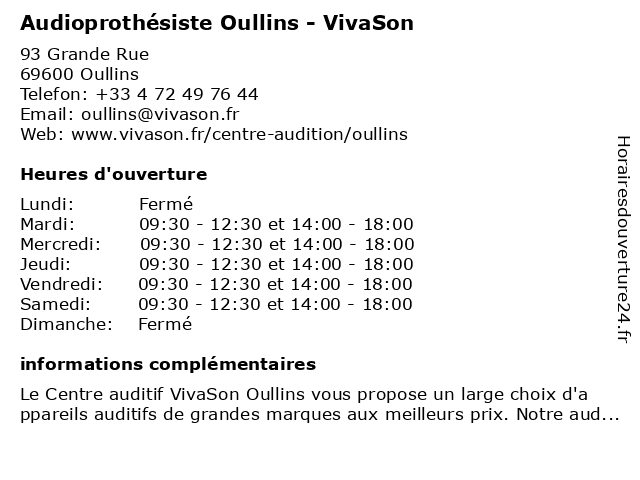 1 Audioprothésiste Oullins-Alain Afflelou Acousticien (Distance: 0,12 km) 74 Grande Rue, 69600 Oullins acousticien, afflelou, alain, audiologie, audioprothésiste, clinique médicale, oullins 2 Audika - Audioprothésiste Oullins (Distance: 0,21 km) 132 Grande Rue, 69600 Oullins appareil auditif, audika, audiologiste, audioprothésiste, centre auditif, oullins, spécialiste audition 3 Audioprothésiste OULLINS Optical Center (Distance: 0,33 km) 2 Rue du Perron, 69600 Oullins-Pierre-Bénite audioprothésiste, center, optical, oullins 4 Amplifon Audioprothésiste Saint Genis Laval (Distance: 2,57 km) 11 Rue Des Halles, 69230 Saint Genis Laval amplifon, audiologie, audioprothésiste, genis, laval, saint 5 Amplifon Audioprothésiste Saint Fons (Distance: 3,71 km) 1 Avenue gabriel péri, 69190 Saint Fons amplifon, audiologie, audioprothésiste, fons, saint 6 Audioprothésiste Sainte Foy Les Lyon Audition Santé (Distance: 3,87 km) 8 Place, 69110 Sainte Foy Les Lyon audiologie, audioprothésiste, audition, foy, les, lyon, sainte, santé |