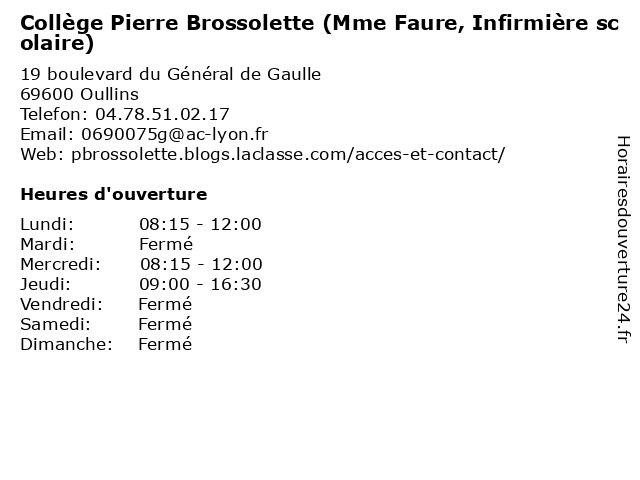 1 Collège Pierre Brossolette (Mme Sanchez, Conseillère d’orientation Psychologue) (Distance: 0,00 km) 19 boulevard du Général de Gaulle, 69600 Oullins brossolette, college, collège, conseillère, d’orientation, enseignement, mme, pierre, psychologue, sanchez 2 Collège la Clavelière (Distance: 2,16 km) 58 rue Jacquard, 69600 Oullins clavelière, college, collège, enseignement, la 3 Piscine Le Kubdo - Période scolaire (Distance: 2,29 km) 28 avenue du 11 Novembre, 69110 Sainte Foy-lès-Lyon activité, bassins, famille, kubdo, le, natation, piscine, période, scolaire, sport 4 École Elémentaire Publique Cité Scolaire Internationale (Distance: 2,76 km) 2 Place de Montréal, 69361 Lyon cité, cours, education, elémentaire, internationale, publique, scolaire, services, école, élémentaire 5 Dr Benjamin Faure - Chirurgien-dentiste (Distance: 3,06 km) 1 Route des Troques, 69630 Chaponost benjamin, chirurgien, dentaire, dentiste, dr, faure, implantologie, parodontologie 6 Camille Faure - Orthoptiste (Distance: 3,46 km) 31 Avenue de Haute Roche, 69310 Pierre-Bénite benoit, camille, centre, faure, frachon, mme, orthoptiste, santé |