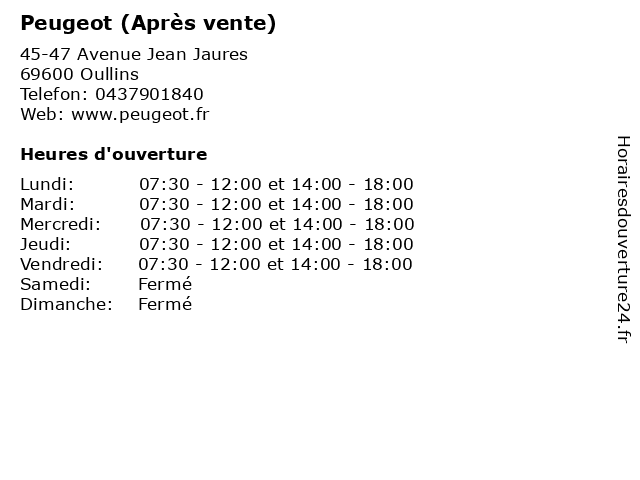 | Lundi | 07:30-12:00 et 14:00-18:00 |
