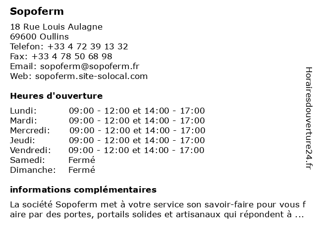 | Dimanche | Fermé |