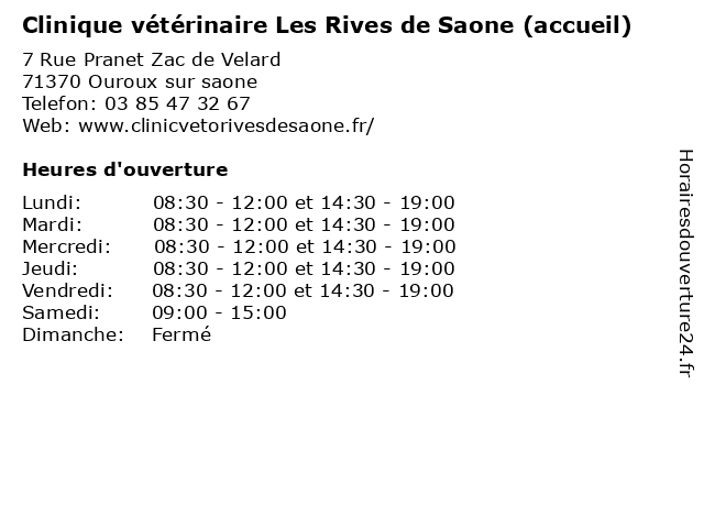 | Lundi | 08:30-12:00 et 14:30-19:00 |